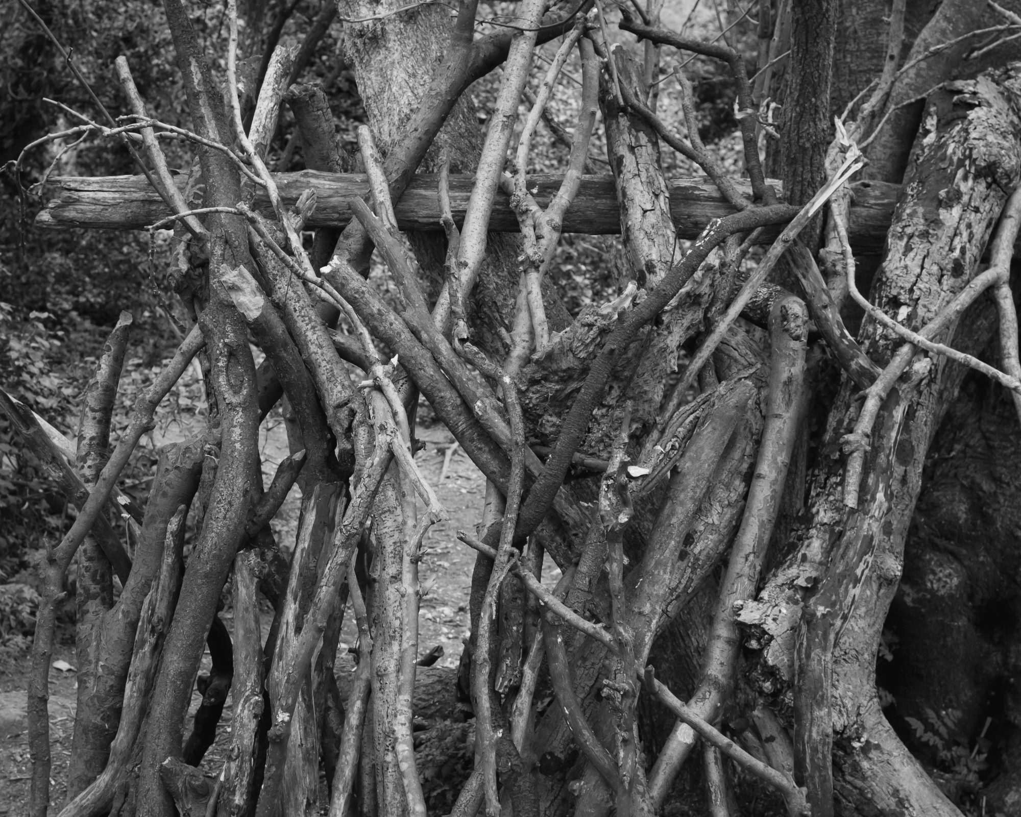 Dens were made with branches and sticks—these communities of spines and ribs fell down, to be reassembled.